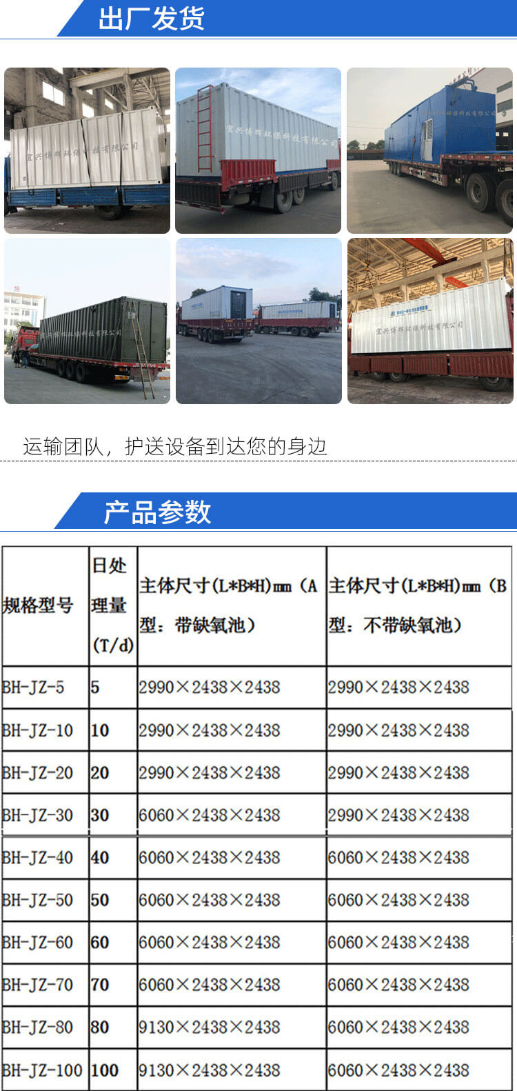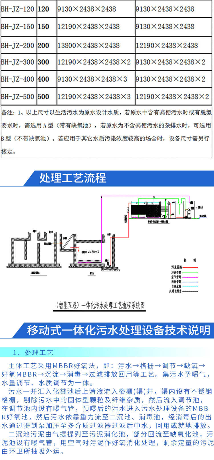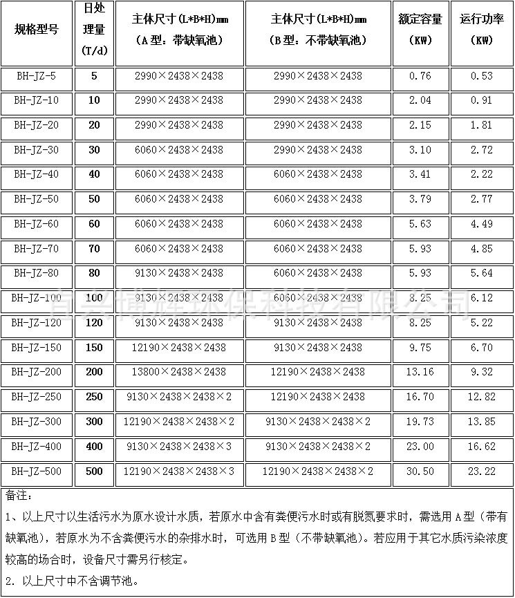 七、BH-JZ一體化污水處理設備主要規(guī)格參數(shù)表;
