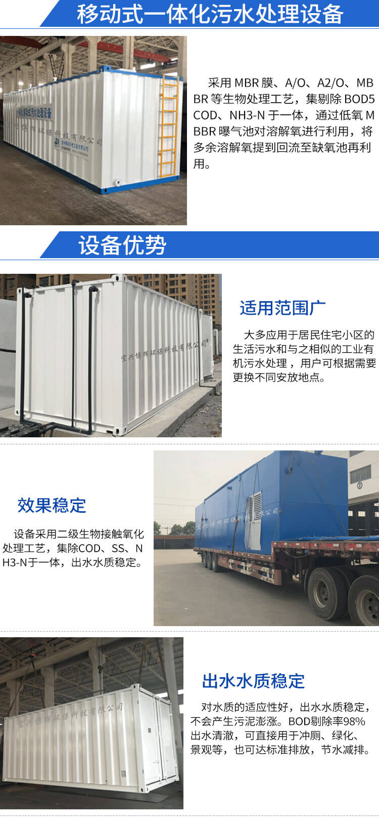 BH-JZ型集裝箱式一體化污水處理設備是博輝環(huán)保科技生產(chǎn)的一種污水處理設備,它采用中空纖維膜生物反應器(MBR)技術(shù),將膜分離技術(shù)、生物處理技術(shù)、智能化控制技術(shù)有機結(jié)合,整套設備經(jīng)優(yōu)化集成后布置在集裝箱體內(nèi),具有安裝快捷、移動方便、處理效果好、占地面積小、運行維護簡單等特點。出水可達到《城市雜用水水質(zhì)》GB/T18920-2002及《景觀環(huán)境用水水質(zhì)》GB/T18921-2002,即可達到國家高的《城鎮(zhèn)污水處理廠排放標準》GB/T 18920-2002一級B(或一級A)標準,可直接排放或回用。